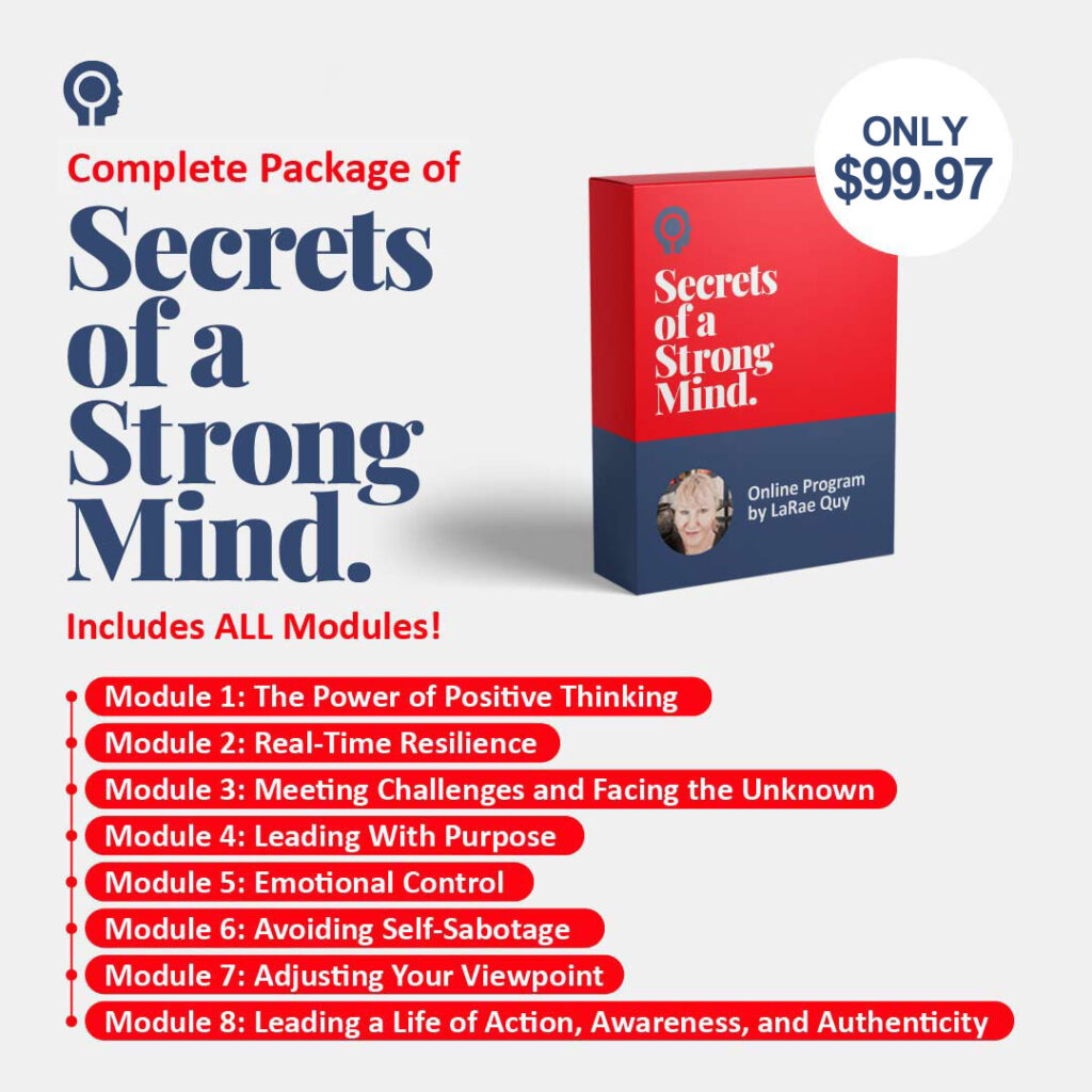 “I had the pleasure of taking LaRae Quy’s Secrets of a Strong Mind online course, which was excellent. That course did so many things for me, it was a very strategic, well-thought-out course that tackled every part of my life…”